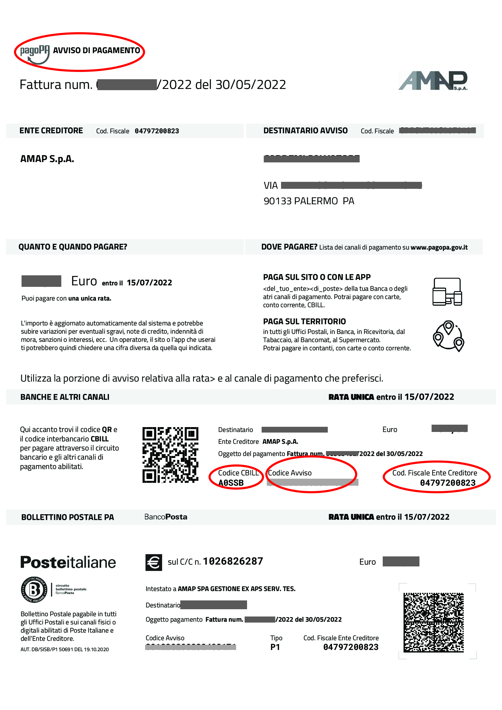 Se non avete attivato il pagamento diretto tramite addebito nel conto corrente bancario o postale (il cosiddetto RID), il metodo di pagamento suggerito è quello di PagoPA, che permette la registrazione immediata nei sistemi aziendali, ma si può comunque scegliere liberamente uno dei metodi riportati in basso.